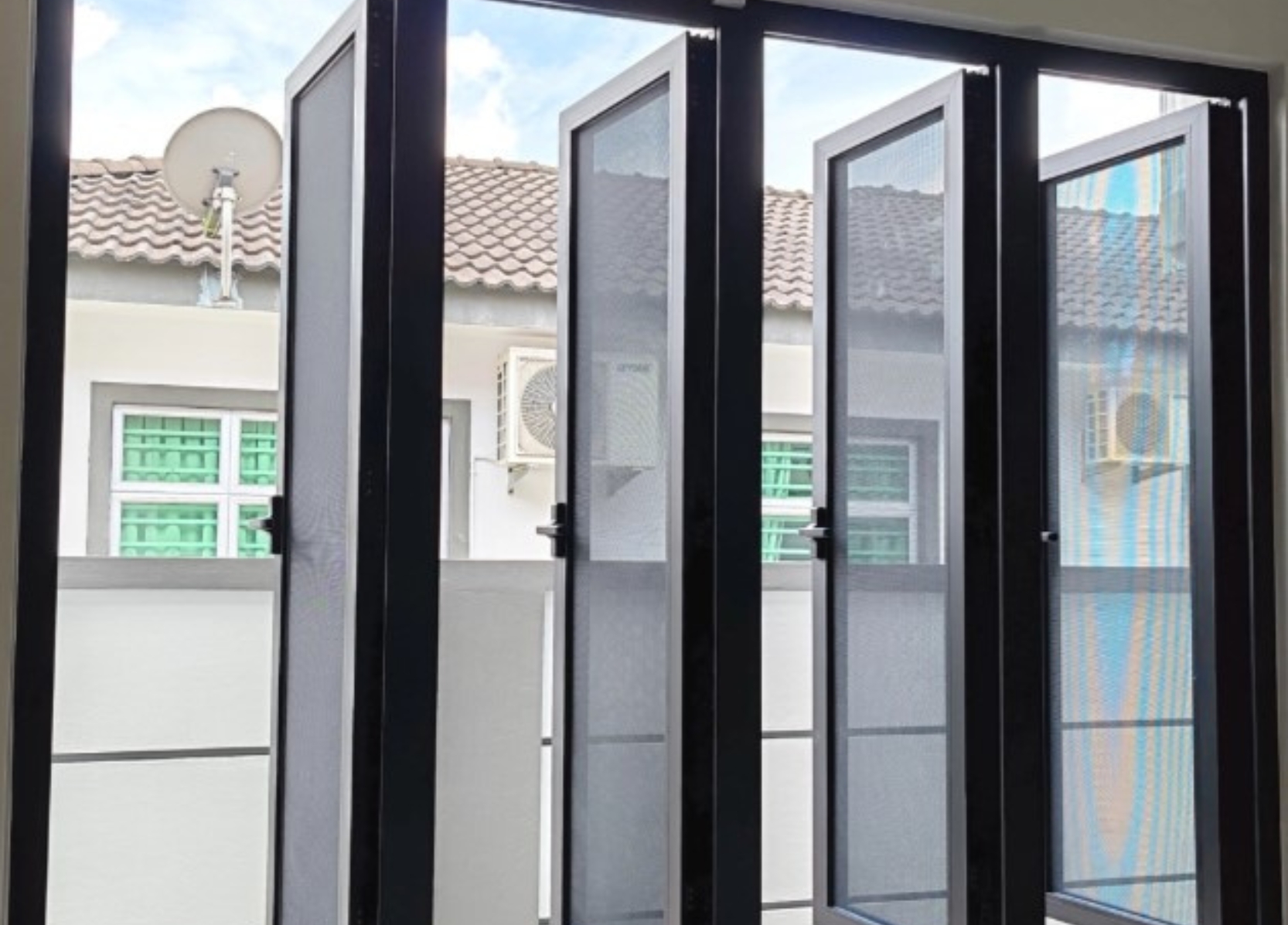 Pintu lipat aluminium moden yang menjimatkan ruang, menawarkan operasi yang lancar, ketahanan tinggi dan kemasan yang elegan.